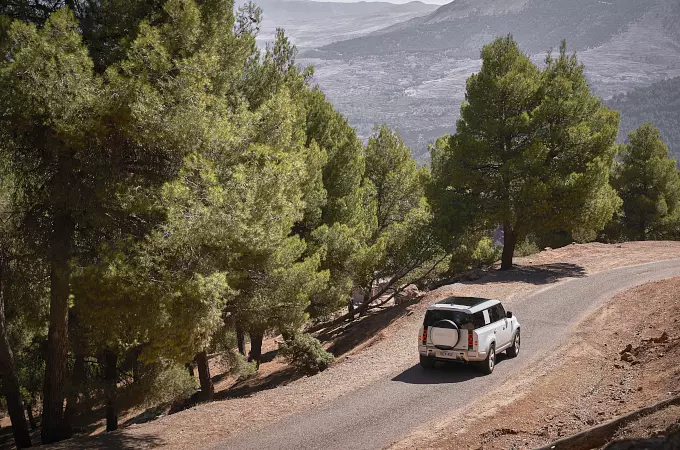 Aby zachować charakterystyczny wygląd tylnej części Defendera, inżynierowie Land Rovera opracowali subtelne podwyższenie tyłu nawiązujące kształtem do łodzi, które jednocześnie maksymalizuje niezrównane właściwości terenowe, jakich klienci oczekują od Defendera, zapewniając kąt zejścia 28,5 stopnia. Obudowy tylnych świateł LED zostały zaprojektowane na nowo, aby zachować trzy wyraźne linie, które definiują boczny profil Defendera i subtelnie wznoszą się ku tyłowi.