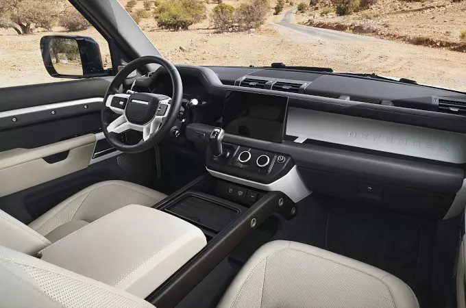Z przodu Defender 130 jest standardowo wyposażony w większy ekran dotykowy Pivi Pro o przekątnej 11,4 cala, który został wprowadzony w Defenderze 90 i 110 V8, umożliwiając lepszą kontrolę nad podstawowymi funkcjami pojazdu za pomocą wyraźnego i intuicyjnego wyświetlacza. Interfejs z zakrzywionym szkłem zapewnia szybkie i nowoczesne działanie. Jest gotowy do użytkowania natychmiast po uruchomieniu pojazdu. Ma prostą strukturę menu i możliwość aktualizacji oprogramowania w technologii Software Over The Air, dzięki czemu jest zawsze na bieżąco.