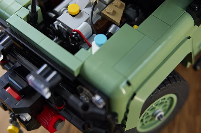 32-centymetrowy model LEGO odzwierciedla najdrobniejsze szczegóły, m.in. w postaci bagażnika dachowego, podniesionego wlotu powietrza, przedniego zderzaka z działającą wyciągarką, bocznych relingów i skrzynki na narzędzia, a także mat trakcyjnych, ułatwiających pokonywanie błota i piasku. Ten niezwykle realistyczny model ma również działający układ kierowniczy i zawieszenie, otwierane drzwi i maskę oraz wnętrze z detalami wzorowanymi na pełnowymiarowym samochodzie Classic Defender 90.